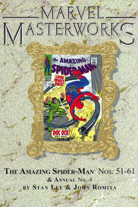 Written by STAN LEE; Pencils by JOHN ROMITA, DON HECK, LARRY LIEBER. The first brand-new Spider-Man Masterworks volume in 12 years debuts just in time for SPIDER-MAN 2! This action-packed volume collects an "amazing" selection of Spidey tales by legends Stan Lee and John Romita Sr. Includes a four-part Doctor Octopus epic - plus appearances by the Kingpin, Ka-Zar, the Spider-Slayer, Captain Stacy and more! And an introduction by John Romita Sr. himself! Collects AMAZING SPIDER-MAN #51-61, ANNUAL #4. 304 PGS./ALL AGES.