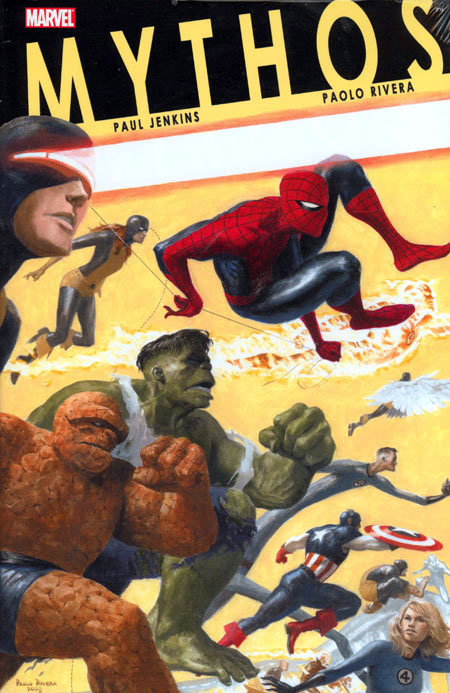 Written by PAUL JENKINS Penciled by PAOLO RIVERA All New Cover by PAOLO RIVERA Showcasing the origins of the greatest heroes in the Marvel Universe! See how Spider-Man's super-hero career began! Learn how the Fantastic Four became the team they are today! Witness the origin and earliest days of the Hulk and Ghost Rider! Revisit Steve Rogers' transformation from a weakling with a heart of steel to the Sentinel of Liberty, Captain America! Experience the first encounter between the X-Men and their ultimate nemesis, Magneto! Paul Jenkins tells the tales, while Paolo Rivera delivers the beautiful fully painted artwork. Collecting MYTHOS: SPIDER-MAN, HULK, FANTASTIC FOUR, GHOST RIDER, CAPTAIN AMERICA and X-MEN. 152 PGS.