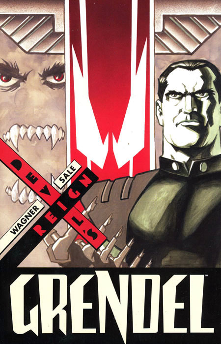 GRENDEL: DEVIL'S REIGN Matt Wagner (W/Cover), Tim Sale (P), Matt Hollingsworth (C), and Giulia Brusco (C) The year is 2530, and the corrupt Church, Vatican Ouest, has fallen, spreading upheaval across North America, along with an infestation of vampires. In this new world, Ex-COP leader Pellon Cross is still at large, devil-possessed Eppy Thatcher is missing, and Orion Assante is on an ambitious quest to restore order to the continent and gain legitimate power. But will Orion attain his goals before threats from overseas change the rules in this game for power? o Grendel: Devil's Reign is a groundbreaking synthesis of politics, war, religion, and the devil created by two of the top talents in comics! o Artist Tim Sale's work can be seen in the NBC hit show Heroes! o Brand new painted cover by Grendel creator Matt Wagner! Tim Sale's first major series in comics, collected for the very first time! Grendel: Devil's Reign 2008 by Matt Wagner. Grendel is a trademark of Matt Wagner. FC, 184 pages, TPB, 7' x 10'