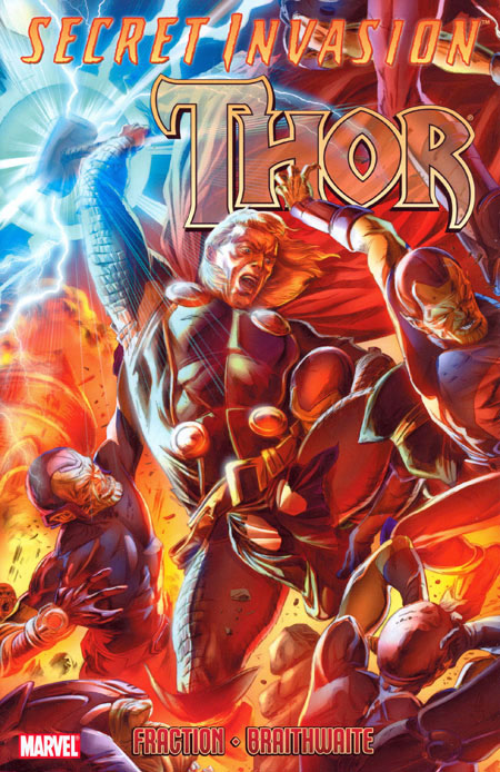 Written by MATT FRACTION Pencils & Cover by DOUG BRAITHWAITE The Skrulls are coming for Asgard, and they've got the gods in their sights! But it's not just the pantheon who stand to suffer the repercussions of the aliens' secret invasion -- the citizens of small-town Broxton, Oklahoma are about to become collateral damage in the attack...and the God of Thunder must defend two cites at once! For a job this big, Thor will have to turn to one of his oldest and closest allies...Beta Ray Bill! Collecting SECRET INVASION: THOR #1-3 and THOR #142. 96 PGS.