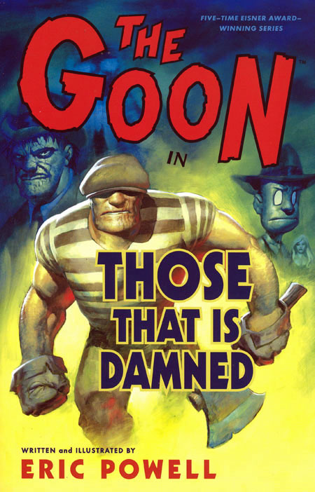 THE GOON VOLUME 8: THOSE THAT IS DAMNED Eric Powell (W/A) and Dave Stewart (C) On sale July 15 FC, 112 pages $15.95 TPB, 7' x 10' The town on the edge of Horse-Eater's Wood is permeated by all manner of dark things-hatred, fear, unhappiness, demons, and the undead (to name a few)-brought on by a curse that has festered within the forest for many years. The Goon himself was drawn by the power of the curse, but his soul is not consumed by this bleak place, and he discovers that he is the only hope for his town. Goon's greatest foe, the dead mobster Labrazio, mounts his assault from a macabre burlesque house, using the Zombie Priest and his demonic kitty to put on the squeeze. It's up to the Goon, Franky, and all their pals to fight for the life their town deserves! o Multiple Eisner Award-winning creator Eric Powell brings you more of the Goon you love in part two of a three-part trade-paperback series, the most epic Goon tale yet-The Return of Labrazio. o Collects issues #24-#27.