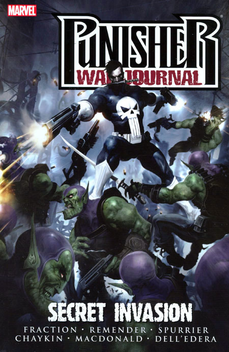 Written by MATT FRACTION, RICK REMENDER & SIMON SPURRIER Penciled by HOWARD CHAYKIN, ANDY MACDONALD & WERTHER DELL'EDERA Cover by CLINT LANGLEY The Marvel Universe is overrun with evil, slimy green aliens from beyond the stars. Did you honestly believe the Punisher wouldn't get his hands dirty? As seen in the smash-hit series Secret Invasion, fearsome aliens known as Skrulls have used their shape-shifting abilities to infiltrate the Earth's superhuman community at every level in an attempt to seize the planet for themselves. Freed from prison as a result of the attack, the Punisher falls back into old habits: guns, mayhem and explosions. But this time, instead of setting his sites on the mafia or maniacs in brightly colored costumes, Frank Castle is fighting for the human race's future, by blasting a hole in every green-skinned monstrosity he comes across. Collecting PUNISHER WAR JOURNAL #24-26 and PUNISHER WAR JOURNAL ANNUAL #1. 120 PGS./Parental Advisory ...$14.99