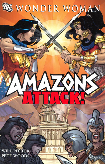 Written by Will Pfeifer Art and cover by Pete Woods The 6-issue miniseries AMAZONS ATTACK by the CATWOMAN creative team of Will Pfeifer and Pete Woods explodes in this new trade paperback! Since the events of INFINITE CRISIS, Wonder Woman's Amazon sisters have retreated to the realm of the gods. But now the Amazons are back, screaming for vengeance. What could compel the Amazons to attack the United States?