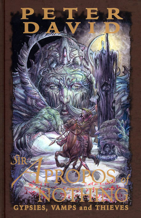 Peter David (w) o Robin Riggs (a) o Mike Kaluta (c) New York Times bestselling author Peter David's acclaimed prose fantasy trilogy comes to life in this hardcover comics collection. Collecting the vibrant five-issue series, this hardcover includes an art gallery by Robin Riggs and variant cover artists, as well as a brand-new Sir Apropos of Nothing prose story by David!