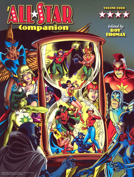 (E) Roy Thomas The epic series of All-Star Companions goes out with a bang, with colossal coverage of the Golden Age All-Star Comics and the sensational secrets of the Junior Justice Society! An index of the complete solo adventures of all 18 original JSAers in their own features, from 1940 to 1951! The JSA's earliest imitators (Seven Soldiers of Victory, All Winners Squad, Marvel Family, and International Crime Patrol)! Infinity, Inc. on Earth-Two and after! And the 1980s Secret Origins series! With rare art by Alex Ross, Todd Mcfarlane, Jerry Ordway, Joe Kubert, Alex Toth, Gil Kane, Murphy Anderson, Gene Colan, Mike Machlan, Howard Chaykin, and others.