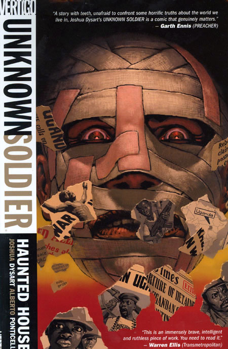 Written by Joshua Dysart Art by Alberto Ponticelli Cover by Igor Kordey 'UNKNOWN SOLDIER could be a new Vertigo classic.' - The Onion 'A story with teeth, unafraid to confront some horrific truths about the world we live in, Joshua Dysart's UNKNOWN SOLDIER is a comic that genuinely matters.' - Garth Ennis 'This is an immensely brave, intelligent and ruthless piece of work. You need to read it.' - Warren Ellis Welcome to Northern Uganda. In 2002, it's a place where tourists are hacked to death with machetes, 12-year-olds with AK-47s wage war, and celebrities futilely try to get people to care. Moses Lwanga is a pacifist doctor caught at the center of this. But when his life is threatened, Moses suddenly realizes he knows how to kill all too well. What is this voice telling him the only way to fix what's wrong with the country is by slaughtering those responsible? And what is Moses' connection to past bandage-wrapped warrior? HAUNTED HOUSE collects the first six issues of the Eisner Award-nominated UNKNOWN SOLDIER series - don't miss it!