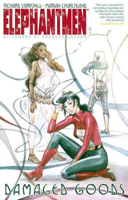 Story RICHARD STARKINGS art & cover MARIAN CHURCHLAND Featuring a new cover and short story written and illustrated by Image Comics' rising star MARIAN CHURCHLAND, this full color trade collects MARIAN's SOLD OUT issues of ELEPHANTMEN focussing on the mademoiselles of Mystery City, Miki, Sahara and Vanity Case. Also features an extensive sketchbook of MARIAN CHURCHLAND art. Collects ELEPHANTMEN #18-20