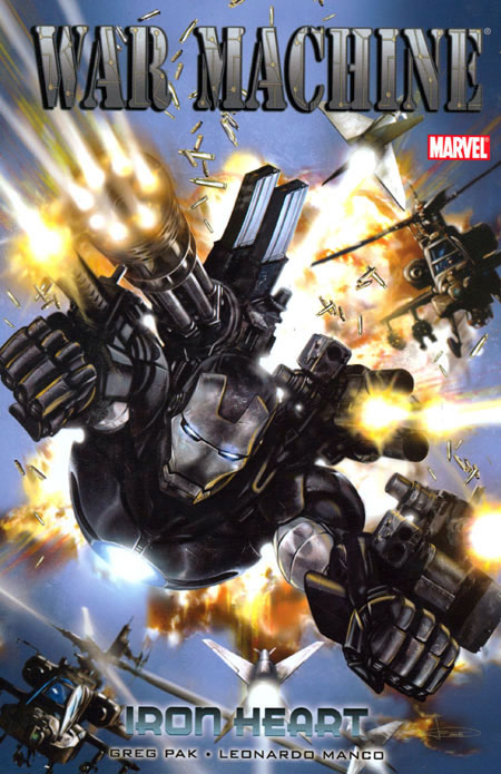 Written by GREG PAK Penciled by LEONARDO MANCO Cover by LEONARDO MANCO Jim Rhodes, former soldier and personal bodyguard to Iron Man, suffers a horrible injury on the battlefield. To survive, the best technicians of Stark Enterprises build him an advanced cybernetic body; with it Rhodes becomes a new type of soldier armed for a new type of conflict - a true War Machine! After stopping mercenaries from using a repurposed Sentinel to slaughter innocents, Rhodes learns that Eaglestar International, a defense contractor headquartered in the war-ravaged land of Aqiria, ordered the attacks. Joined by Parnell Jacobs, a former arms dealer, and Bethany Cabe, head of a secret R&D facility, Rhodes decides that for his next mission, he'll do what no court in the land will: bring the corrupt conglomorate to justice! But before he can put an end to Eaglestar's war crimes, Norman Osborn introduces the Dark Avenger known as Ares into the mix! Can even the ultimate weapon of destruction defeat the god of war - or will a deadly experimental virus bring down both warriors by turning a city of civilians into unstoppable killing machines?! Collecting WAR MACHINE #1-5 and material from DARK REIGN: NEW NATION. 136 PGS./Rated T+