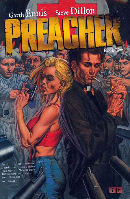 Written by Garth Ennis Art by Steve Dillon Cover by Glenn Fabry In this new hardcover volume collecting PREACHER #13-26, Jesse Custer, along with his girlfriend Tulip and their Irish vampire friend Cassidy, head west to a party of Babylonian proportions. Then Jesse flies to France to rescue Cassidy from the clutches of religious fanatics. His search leads him into a no-holds-barred battle against the forces of the mysterious organization known as The Grail.