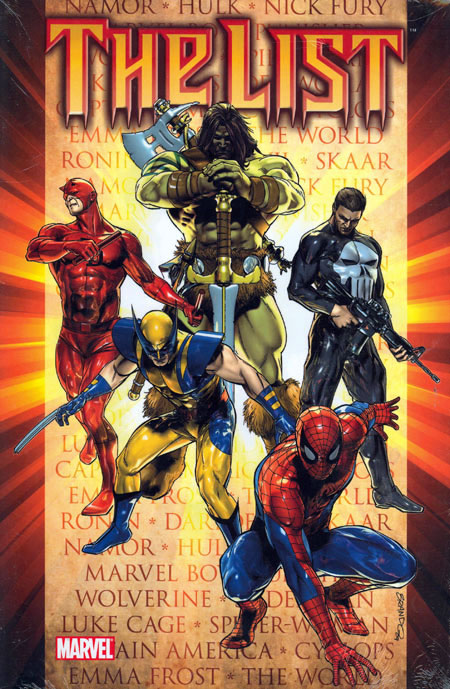 Written by BRIAN MICHAEL BENDIS, MATT FRACTION, ANDY DIGGLE, JONATHAN HICKMAN, RICK REMENDER, GREG PAK, JASON AARON & DAN SLOTT Penciled by MARKO DJURDJEVIC, ALAN DAVIS, BILLY TAN, ED MCGUINNESS, JOHN ROMITA JR., BEN OLIVER, ESAD RIBIC & FRANK CHO New Cover by BRANDON PETERSON Norman Osborn plans on making a list, checking it twice and delivering an unhealthy amount of Dark Reign madness directly into the lives of super heroes both naughty and nice in DARK REIGN: THE LIST, a series of eight interconnected stories heralding the next major chapter in the Marvel Universe's current saga. Collecting DARK REIGN: THE LIST - DAREDEVIL, AVENGERS, X-MEN, HULK, SECRET WARRIORS, WOLVERINE, PUNISHER and AMAZING SPIDER-MAN. 200 PGS./Parental Advisory