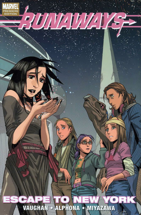 Written by BRIAN K. VAUGHAN Penciled by ADRIAN ALPHONA & TAKESHI MIYAZAWA Cover by TAKESHI MIYAZAWA The team's lineup changes forever in the perfect jumping-on point for the series that Wizard said 'could be the most original book to focus on teenaged super heroes since Spider-Man debuted all the way back in 1962!' When a dangerous alien invades Los Angeles, the Runaways' own Karolina Dean may be the only hero in the Marvel Universe who can stop him... but at what cost? Plus: The Runaways embark on a coast-to-coast adventure, guest-starring Cloak and Dagger AND the New Avengers! When Cloak is accused of a crime he didn't commit by the heroes of New York City, the vigilante is forced to turn to the teenage Runaways for help. This story will take our teens to a place they've never been: NYC! Collecting RUNAWAYS (2005) #7-12. 144 PGS./Rated T+