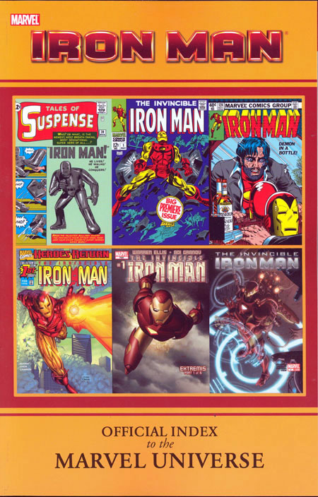Written by VARIOUS Get the complete history of Iron Man from his earliest appearances all the way up to the present day. This book comes packed with synopses of every Iron Man comic-including back up strips-introducing you to the characters, teams, places and equipment that appeared within, providing vital information about all things Iron Man! Collecting material from OFFICIAL INDEX TO THE MARVEL UNIVERSE #1-13. 272 PGS./Rated A