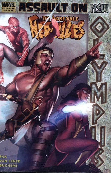 Written by GREG PAK & FRED VAN LENTE Penciled by RODNEY BUCHEMI Cover by ADI GRANOV Hercules! Spider-Man! Ares! New Avengers! Wolverine! Mighty Avengers! The Agents of Atlas! If there's a bigger event this fall, we don't know what it could be! At long last, the Prince of Power takes the fight to his villainous stepmother Hera and the forces of the Olympus Group -- just as she unleashes the most terrifying threat the Marvel Universe has ever seen! A battle of god-like proportions begins! For months, the signs have been all over the Marvel Universe...The tension has been rising...All pointing to a single question: 'What is CONTINUUM?' The answer turns out to be so deadly, so horrifying, that it will alter the course of the MU forever -- unless Hercules and the New and Mighty Avengers can stop it in time...but standing in their way is the fighting-mad ARES, God of War!' Collecting INCREDIBLE HERCULES #138-142 and ASSAULT ON NEW OLYMPUS PROLOGUE.