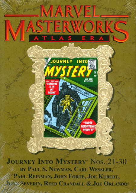 Written by VARIOUS Penciled by JOE MANEELY, JOE KUBERT, GENE COLAN, JOHN SEVERIN, REED CRANDALL, JOE ORLANDO, ROSS ANDRU, PAUL REINMAN, ANGELO TORRES, BILL BENULIS, MORT LAWRENCE, JOHN FORTE, DICK AYERS, JOE SINNOTT, VIC CARRABOTTA, JACK KATZ, PETE TUMLINSON, ED WINIARSKI, JAY SCOTT PIKE, BOB POWELL, BOB BROWN, DOUG WILDEY & MORE Cover by JOE MANEELY The Marvel Masterworks' unmatched library of classic comics takes another undead shuffle into the world of Atlas Era horror with Journey Into Mystery! One of comics' most storied titles, Journey Into Mystery grew and changed with the times and styles of the comic-book field-from horror to fantasy, and monsters to super heroes, Stan Lee made it a trendy title to remember. With artwork by a cast of the medium's greatest talents-Joe Maneely, Gene Colan, Joe Kubert, John Severin, Reed Crandall, Joe Orlando and more, each and every tale is a dazzling treat set to shock, surprise and horrify! Beautifully restored with all the gruesomeness that made comics infamous, and topped off with an in-depth historical essay by noted historian Dr. Michael J. Vassallo, Journey Into Mystery is an exciting trip to the Atlas Era you won't want to miss! Collecting JOURNEY INTO MYSTERY #21-30 272 PGS/All Ages ...$59.99