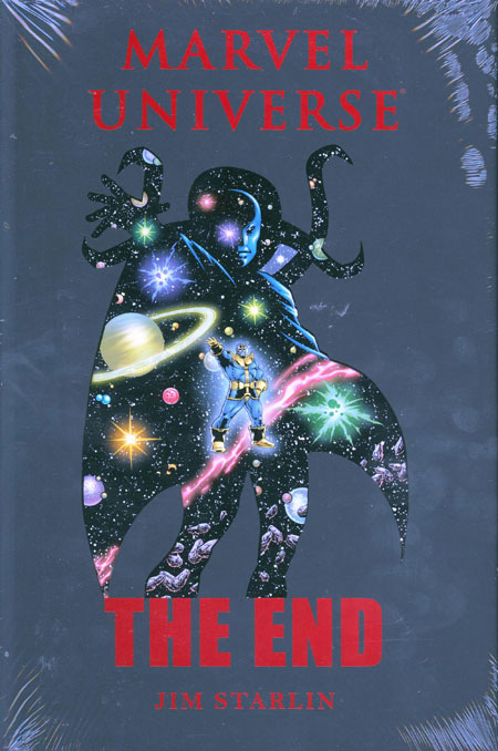 Written by JIM STARLIN Penciled by JIM STARLIN Covers by JIM STARLIN Jim Starlin is back, and this time he destroys everything! When the immortal Egyptian pharaoh Akhenaten gains cosmic powers, his first act is to annihilate the Avengers and the X-Men! The universe is endangered, and Thanos and Dr. Doom may be the world's best chance at survival! Featuring lead roles for Thor, Zeus, Captain Marvel, Dr. Strange, Namor and the Silver Surfer! And Thanos, more powerful than you've ever seen him! Collecting MARVEL UNIVERSE: THE END #1-6. 168 PGS./Rated T+ ...$29.99 ISBN: 978-0-7851-4571-4 Trim size: standard