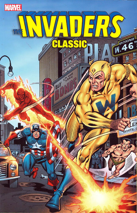 Written by ROY THOMAS & DON GLUT Penciled by ALAN KUPPERBERG & DAVE HOOVER Cover by ALAN KUPPERBERG The Invaders return to New York just in time to aid the Liberty Legion against the deadly Iron Cross! Then, with the Kid Commandos, the Invaders face the deadly Super-Axis-Lady Lotus, U-Man, Baron Blood, Master Man, and Warrior Woman! Then see the Invaders and their allies battle the Battle-Axis, a group of former heroes who have turned Nazi! Witness the continuing adventures of the greatest heroes of World War II, in both their ongoing series from 1975, and their 1993 limited series! Captain America! The Human Torch! The Sub-Mariner! The Whizzer! Miss America! Patriot! Thin Man! Jack Frost! Red Raven! Blue Diamond! Bucky! Toro! Golden Girl! Human Top! Union Jack! Spitfire! Aarkus the Vision! The Blazing Skull! The Silver Scorpion, and more! With surprise appearances by Nick Fury and the Yellow Claw! And a look back at the villainous days of the X-Men's Dr. Nemesis! Collecting INVADERS (1975) #35-41 and INVADERS (1993) #1-4. 248 PGS./Rated A ...$29.99