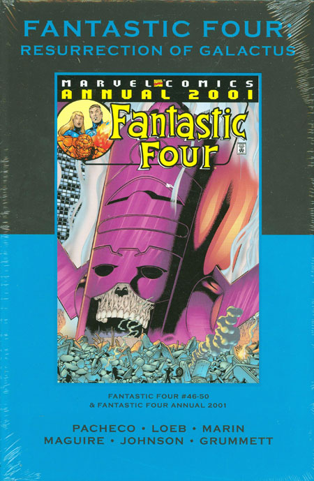 Written by CARLOS PACHECO, JEPH LOEB & RAFAEL MARIN Penciled by CARLOS PACHECO, JEFF JOHNSON & TOM GRUMMETT Covers by CARLOS PACHECO Abraxas attacks! His first volley has left Galactus dead, the Watcher in a coma and all of reality rewritten! Can the Fantastic Four and their allies stop this all-powerful madman before it's too late? Guest-starring the Silver Surfer! Moondragon! Quasar! Captain Marvel! Namorita! She-Hulk! Witness the most narrow of victories as the weakest among them saves the world, trading the defeat of one galactic threat for the rebirth of another! And is the Invisible Woman pregnant? Collecting FANTASTIC FOUR (1998) #46-50 and FANTASTIC FOUR ANNUAL 2001. 200 PGS./Rated A