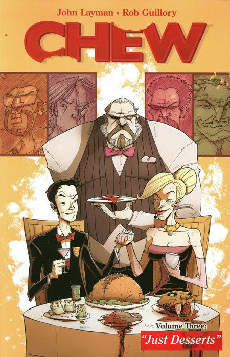 Story JOHN LAYMAN art & cover ROB GUILLORY Things are looking up for Tony Chu, the cibopathic federal agent with the ability to get psychic impressions from the things he eats. He's got a girlfriend. He's got a partner he trusts. He even seems to be getting along with his jerk boss. But his ruthless ex-partner is still out there, operating outside of the law, intending to make good on his threats against Tony and everybody Tony cares about. It's just a matter of time before their investigations collide, blood spills and-inevitably-body parts are eaten. Presenting the third storyline of CHEW, the follow-up to the New York Times Best Sellers 'Taster's Choice' and 'International Flavor.' Check out the strange and darkly comic series about cops, crooks, cooks, cannibals and clairvoyants. Winner of the Eisner Award for Best New Series and nominated for Eagle and Harvey awards to boot! Collects CHEW #11-15