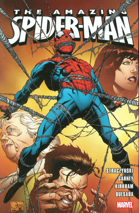 Written byJ. MICHAEL STRACZYNSKI Penciled by RON GARNEY, JOE QUESADA & TYLER KIRKHAM Cover by JOE QUESADA Concluding his lengthy historic run on Spider-Man, JMS takes our hero to new highs and new lows-setting the stage for a new era of Spidey unlike any other! Collecting the famous Civil War, Back in Black and One More Day storylines, this volume has it all: Spider-Man in his new red armor, Spider-Man back in his black costume and Spider-Man unmasked to the public! Spidey fights on both sides of the Civil War, against Captain America and Iron Man themselves! And when Aunt May gets shot by one of the Kingpin's henchmen, how far will Peter go to save her? Witness the final days of Peter and Mary Jane's marriage! Collecting AMAZING SPIDER-MAN #529-545, FRIENDLY NEIGHBORHOOD SPIDER-MAN #24, SENSATIONAL SPIDER-MAN #41, SPIDER-MAN: ONE MORE DAY SKETCHBOOK, MARVEL SPOTLIGHT: SPIDER-MAN - ONE MORE DAY. 520 PGS./Rated T+
