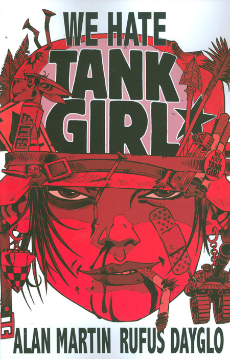 story ALAN MARTIN art & cover RUFUS DAYGLO Dark and nasty, WE HATE TANK GIRL is a bonanza of stories, posters, prose and extras. Featuring tales from Tank Girl's past, present and future, and including the long-awaited CUT N' DRESS BOOGA! Collected here for the first time, with never-before-seen bonus story, 'Small Unit.' An unmissable must for Tank Girl fans of all hairstyles. Collects TANK GIRL ONE-SHOTS: DARK NUGGETS, DIRTY HELMETS & HAIRY HEROES RETAILER WARNING: MAY NOT BE SUITABLE FOR ALL AGES