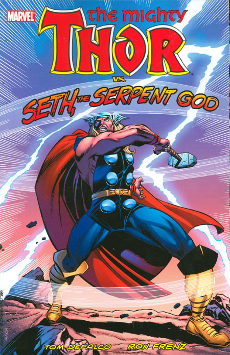 Written by TOM DEFALCO Penciled by RON FRENZ Cover by RON FRENZ Seth, the Egyptian God of Death, has set his sights on Asgard, and he won't stop until he's exterminated the entire race! It's an all-out war between the gods, with Seth pulling out all the stops and winning! But is it possible? Is Odin still alive? Guest-starring Earth-Force and the Black Knight! And what hope does Thor have against Surtur the Fire-Demon, the one villain Odin has never been able to permanently defeat? Collecting THOR (1966) #395-400.