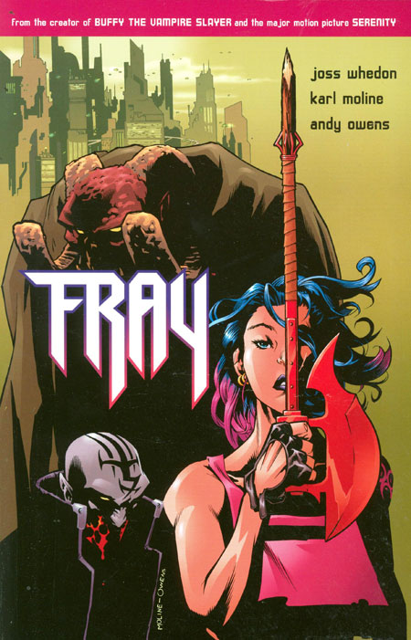 Writer: Joss Whedon Penciller: Karl Moline Inker: Andy Owens Hundreds of years in the future, Manhattan has become a deadly slum, run by mutant crime-lords and disinterested cops. Stuck in the middle is a young girl who thought she had no future, but learns she has a great destiny. In a world so poisoned that it doesn't notice the monsters on its streets, how can a street kid like Fray unite a fallen city against a demonic plot to consume mankind? Joss Whedon, the celebrated creator of Buffy the Vampire Slayer, brings his vision to the future in this unique tale. As inventive in the comics medium as in that of television or film, Whedon spins a complex tale of a skilled thief coming of age without the help of friends or family, guided only by a demonic Watcher. * Joss Whedon, creator of Fray and Buffy the Vampire Slayer, has been nominated for Nebula, Hugo and Emmy Awards as well as an Oscar! * All of the first 7 Fray comic books have gone to second printings with the first issue enjoying a third printing! Combined sales have reached over 200,000 copies! * Fray artist, Karl Moline, has created art for Dark Horse, Marvel, Harris and Crossgen Comics!