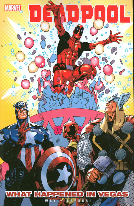 Written by DANIEL WAY with DUANE SWIERCZYNSKI Penciled by CARLO BARBERI with PHILIP BOND Cover by JASON PEARSON Deadpool takes it to the house! It's a Vegas vacation done Deadpool-style - full of explosions, D-list super villains and a casino caper that would make George Clooney proud! When he puts the squeeze on a mouthy club owner, Deadpool draws the ire of Las Vegas' biggest casino bosses and their newest protector-for-hire, The House - a super-suited security guard armed to the teeth whose got a bone to pick with the man in red and black. You see, the dude in the suit is none other than...well, we're not gonna tell you here, ya bum! Read the book to find out who's come back from Deadpool's past to blast his sorry butt - and how Deadpool ends up with a steady job, for real! Collecting DEADPOOL #23-26. 112 PGS./Parental Advisory