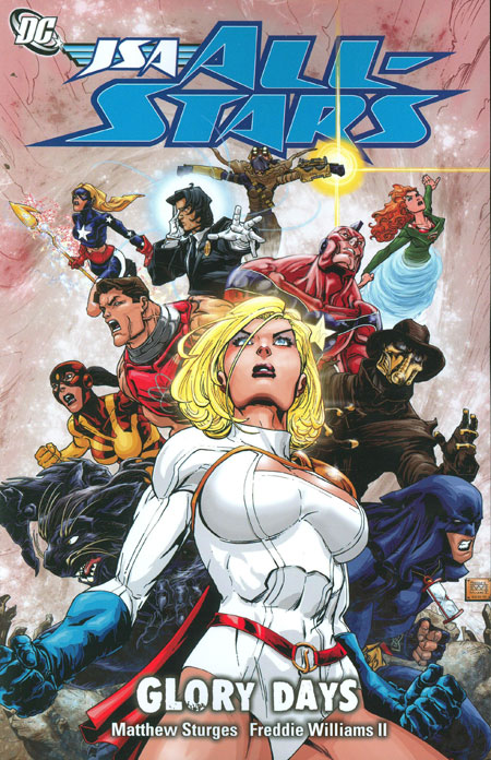 Written by MATTHEW STURGES Art by FREDDIE E. WILLIAMS II, HOWARD PORTER and ART THIBERT Cover by FREDDIE E. WILLIAMS II The Justice Society of America spinoff group barely survived their first mission alone! Luckily, their no-nonsense stance on justice carried them through, and now they're investigating a bizarre drug cartel consisting of genetically altered jungle animals that'll lead the All-Stars into a confrontation with actual gods and goddesses. Collected from issues #7-13!