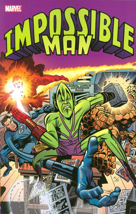 Written by VARIOUS Penciled by VARIOUS Cover by JACK KIRBY He's green, he shape-shifts, he flies - he does the impossible! See the aptly named Impossible Man wreak havoc across the Marvel Universe, from Latveria to the S.H.I.E.L.D. Helicarrier to the Savage Land! And wait till you meet the Impossible Woman - and their kids! Guest-starring EVERYONE - from the Fantastic Four to Spider-Woman to Thor to the X-Men! Collecting FANTASTIC FOUR (1961) #11 and #176, MARVEL TWO-IN-ONE #60 and #86, SPIDER-WOMAN (1978) #45, X-MEN ANNUAL #7, NEW MUTANTS ANNUAL #3, SILVER SURFER (1987) #33, IMPOSSIBLE MAN SUMMER VACATION SPECTACULAR #1-2, MARVEL COMICS PRESENTS (1988) #91, and X-FORCE & CABLE ANNUAL '95 360 PGS./Rated A
