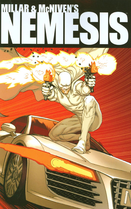 The writer and artist behind CIVIL WAR and OLD MAN LOGAN return with a tale of one man with a plan for vengeance! Who is Nemesis? He is a son of privilege, an inheritor of billions from his deceased parents. He owns a fleet of the finest cars and a hangar full of planes, and has countless technological gadgets at his command. Donning a mask and long flowing cape, he's a man in white fighting relentlessly for a cause in which he believes. But if you're thinking Mark Millar (KICK-ASS, Wanted) and Steve McNiven (CIVIL WAR) are telling a story you've already heard before, think again: You'll know you've got something completely different by the turn of the first page. Nemesis tracks the violent fantasies come to life of the villain to top all villains in an in-your-face, unapologetic tour-de-force of action, ultraviolence and over-the-top humor! Collecting NEMESIS #1-4. 112 PGS./Mature