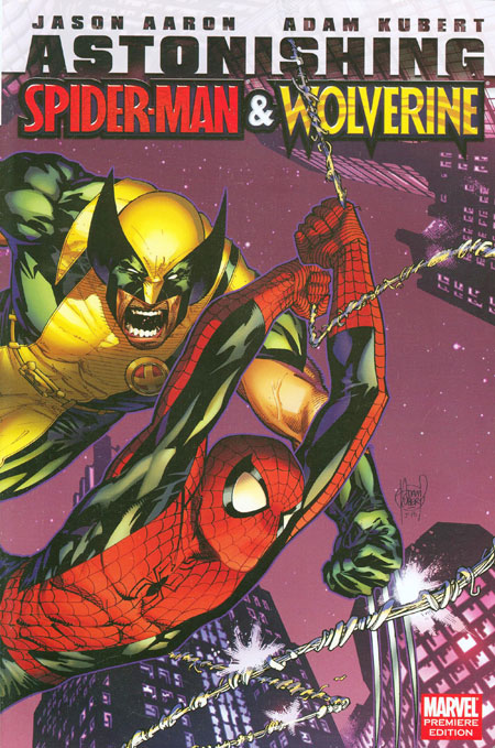 Written by JASON AARON Penciled by ADAM KUBERT Cover by ADAM KUBERT Spider-Man and Wolverine! Everyone's favorite wisecracking web-spinner and ferocious furball come together in their first major series ever! The superstar creative team of Jason Aaron (WOLVERINE: WEAPON X, PUNISHERMAX) and Adam Kubert (ULTIMATE FANTASTIC FOUR, ULTIMATE X-MEN) send Spidey and Wolvie to the edges of the Marvel Universe as they face such awful beings as the Czar, Big Murder and Doom the Living Planet! But who is the major Marvel villain pulling the strings? And can Spidey and Wolvie refrain from killing one another long enough to find out? Collecting ASTONISHING SPIDER-MAN & WOLVERINE #1-6 and material from the ASTONISHING SPIDER-MAN & WOLVERINE #1 DIRECTOR'S CUT. 176 PGS./Rated T+