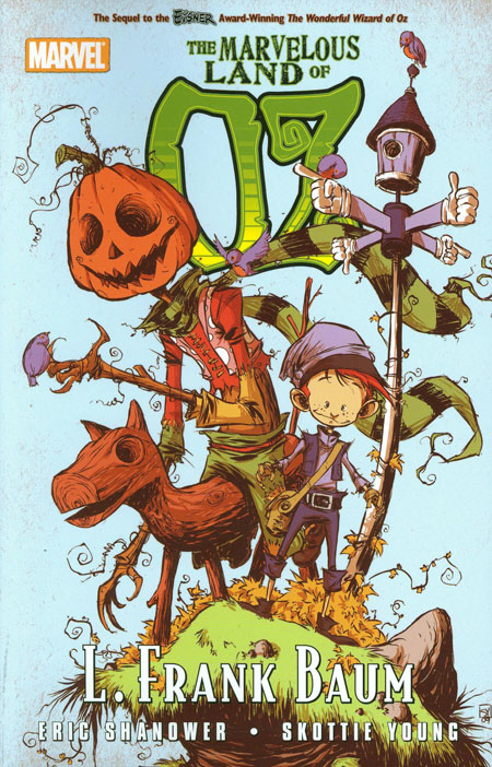 Written by ERIC SHANOWER Penciled by SKOTTIE YOUNG Cover by SKOTTIE YOUNG L. Frank Baum's magical world of Oz comes to life in a way you never imagined! Follow the adventures of a young boy named Tip as he escapes the servitude of the mean old witch Mombi and runs away with his newly created magical companion, Jack Pumpkinhead. Along the way, they meet Sawhorse and follow the legendary Yellow Brick Road to the Emerald City - now ruled by King Scarecrow! But when Jinjur overthrows King Scarecrow and Mombi returns, Tip and his friends must enlist the aid of Glinda, the Good Witch, to try to set things right in Oz! Collecting THE MARVELOUS LAND OF OZ #1-8. 200 PGS./All Ages
