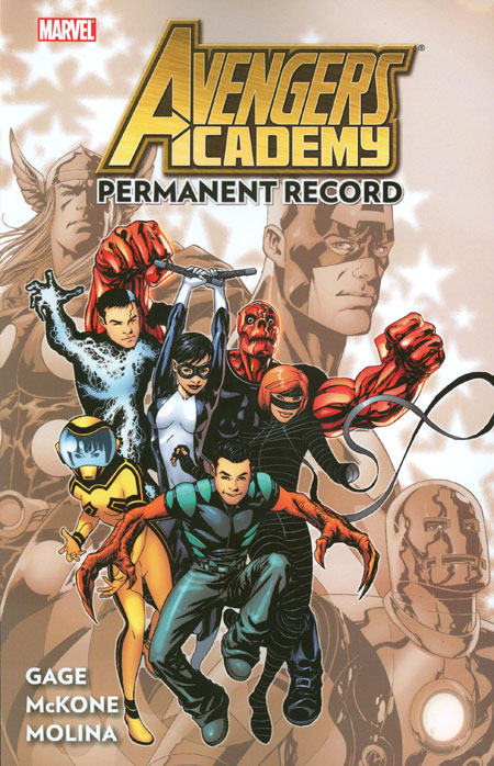 Written by CHRISTOS GAGE Penciled by MIKE MCKONE & JORGE MOLINA Cover by MIKE MCKONE Recruited by Norman Osborn during his Dark Reign, six teens - Veil, Finesse, Mettle, Hazmat, Reptil and Striker - were subjected to torturous training methods to mold them in Osborn's image. Now, in the Heroic Age, they are enrolled by Hank Pym and his team of instructors - including Tigra, Justice, Speedball and Quicksilver - into the Avengers Academy! Told they are the most promising of the new generation of heroes, the troubled team soon learns the shocking truth: They are instead being monitored to see whehter they will unravel and wreak havoc on the Marvel Universe! Now, it's up to each young adult to decide whether they will join the ranks of Earth's Mightiest Heroes, or instead become the villains of tomorrow. School is in session, so grab your seat for the critically acclaimed wild ride that introduces the next class of captivating and controversial Marvel legends! Collecting AVENGERS ACADEMY #1-6 and material from ENTER THE HEROIC AGE. 168 PGS./Rated A