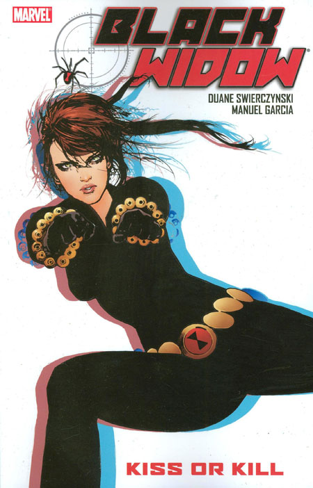 Written by DUANE SWIERCZYNSKI & JOE AHEARNE Penciled by MANUEL GARCIA & BRIAN CHING Cover by TRAVEL FOREMAN A senator is seduced and assassinated, and his journalist son follows the trail to a fatally sexy Soviet agent. This deadly 'woman in black' moonlights as a high-class escort to lure powerful men into her web of blackmail and death. But Nick Crane believes he's finally found his father's murderer, and he's about to expose...the Black Widow! Plus: Tony Stark gets his spy on, and the Black Widow proves she's an Iron Man's best friend, when the Armored Avenger goes undercover to take down a foe using his own decommissioned tech! Collecting BLACK WIDOW (2010) #6-8 and material from IRON MAN: KISS AND KILL. 104 PGS./Rated T+