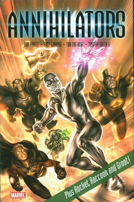 Written by DAN ABNETT & ANDY LANNING Penciled by TAN ENG HUAT & TIMOTHY GREEN II Covers by ALEX GARNER & SKOTTIE YOUNG Because you - yes, you! - demanded it: Marvel's all-star cosmic team - and cult faves Rocket Raccoon and Groot - in one massive story! The Silver Surfer! Beta-Ray Bill! Gladiator! Quasar! Ronan! When the Dire Wraiths strike, Cosmic Masters DnA (THE THANOS IMPERATIVE, THOR/IRON MAN) and Tan Eng Huat (SILVER SURFER, THOR: FIRST THUNDER) assemble the heaviest hitters in all the universe to save the day! And not to be outdone, the demented duo of Rocket Raccoon and Groot return for their own, reader-friendly adventure! What do you do after you've saved the galaxy? DnA and the fabulous Timothy Green II (ANNIHILATION: CONQUEST - STAR-LORD) answer that question with madcap sci-fi combat and swashbuckling, space-faring mayhem! Collecting ANNIHILATORS #1-4. 184 PGS./Rated T+