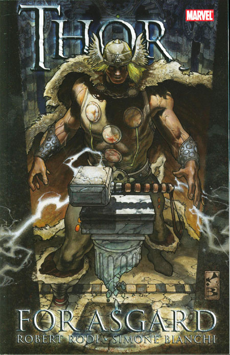 Written by ROBERT RODI Penciled by SIMONE BIANCHI Cover by SIMONE BIANCHI The Thunder God as you've never seen him before! Odin has left his kingdom of Asgard, putting Thor in charge of a crumbling empire. The Thunder God is faced with one trouble after another: rebelling Frost Giants, internal dissent from his fellow countrymen and a winter that has lasted for years. These trials have left Thor weary - unable, even, to lift his sacred hammer, Mjolnir. When a surprise attack damages Bifrost, the Rainbow Bridge, and injures its guardian, Heimdall, Thor realizes Asgard is not only being attacked from outside, but also from within. With his kingdom on the brink of collapse, can Thor uncover and defeat the forces that conspire against him, or is the inevitability of Ragnarok upon him? Collecting THOR: FOR ASGARD #1-6 and material from THOR SPOTLIGHT.