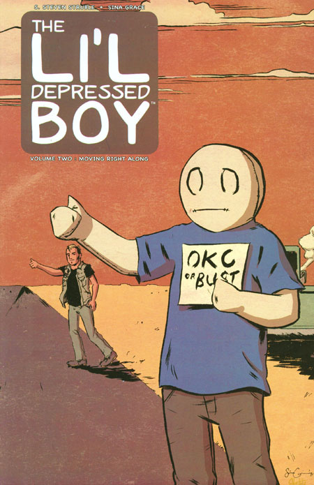 story S. STEVEN STRUBLE art / cover SINA GRACE 'MOVIN' RIGHT ALONG' LDB has stumbled hard on his path to happiness. It's easy for him to retreat back into his routines, and avoid the outside world. Thankfully, his friend Drew Blood notices his need for escape and takes him on a road trip to see a concert. Adventure awaits - along with peril and maybe closure? Collects THE LI'L DEPRESSED BOY #5-8