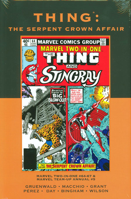 The Snake God's crowning glory! The Serpent Crown: a power that goes to your head and overtakes your mind! Armed with TWO Crowns, Avengers foe Hugh Jones seizes control of Washington, D.C. - and it's up to the Thing and friends to stop him! But when the Crowns - on their own - possess hundreds of people to acquire hundreds MORE Crowns, the Scarlet Witch and Sorcerer Supreme Dr. Strange must add magic to the Thing's might to halt the hellish headgear's havoc! Featuring the Serpent Squad, the Avengers and more! Guest-starring the Amazing Spider-Man and future Protector of the Universe Quasar! Collecting MARVEL TWO-IN-ONE #64-67 and MARVEL TEAM-UP ANNUAL #5. 120 PGS./Rated T