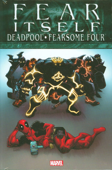As the Marvel Universe is wracked with FEAR ITSELF, only Deadpool sees it for what it truly is: a way to make money. Has Deadpool really been chosen as one of the Worthy, granted one of the Serpent's Hammers? Or did he just take any old hammer and go to town with some rhinestones? Either way, when Deadpool hits the street with his shiny new mallet it's - STOP! Hammer time. Plus: Do you fear...your protectors turning on you? Man-Thing has gone mad as fear consumes the world, and Manhattan will burn. The only heroes that seek to stop him have given into fear themselves, and no one is safe! Experience FEAR ITSELF through the eyes of fallen heroes Howard the Duck, Nighthawk, Frankenstein and She-Hulk! Collecting FEAR ITSELF: DEADPOOL #1-3 and FEAR ITSELF: FEARSOME FOUR #1-4. 152 PGS./Rated T+