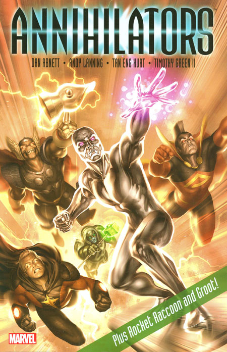 Gladiator, Quasar, Beta Ray Bill, Ronan the Accuser and the Silver Surfer are the universe's most powerful squad of first responders: the Annihilators! When this newly formed group receives strange signals from the Dark Nebula - home of the noble race of Spaceknights - these mighty allies set off to investigate. There, they find a blast from the past who has discovered a way to rip a hole through space and time, unleashing the vicious Dire Wraiths! Plus: After the Guardians of the Galaxy disbanded, Rocket Raccoon settled into a quiet life with a steady job in a mailroom. But when a killer clown made of sentient wood attacks him at work, the trigger-fingered and quick-witted hero must journey to Planet X - home of his old buddy Groot, the giant tree-creature - in search of answers! Collecting ANNIHILATORS #1-4