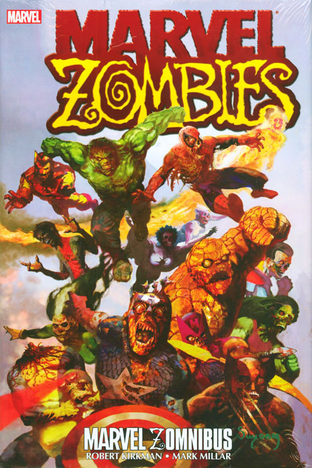 The smash-hit Marvel Zombies saga is collected in one meaty, macabre tome! The dead walk - and leap, fly and climb walls - when Marvel's mightiest are transformed into flesh-eating monsters! After devouring every single person on Earth, the ravenous once-heroes set their sights higher - taking on Galactus, spreading into space, and breaking into new and delicious dimensions…including our own! Lock your doors, and board up your windows - the Marvel Zombies are coming for you! Collecting MARVEL ZOMBIES: DEAD DAYS, MARVEL APES: PRIME EIGHT, MARVEL ZOMBIES: EVIL EVOLUTION, ULTIMATE FANTASTIC FOUR #21-23 and #30-32, MARVEL ZOMBIES #1-5, BLACK PANTHER (2005) #28-30, MARVEL ZOMBIES 2 #1-5, MARVEL ZOMBIES RETURN #1-5, MARVEL ZOMBIES 3 #1-5, MARVEL ZOMBIES 4 #1-4, MARVEL ZOMBIES 5 #1-5, and MARVEL ZOMBIES SUPREME #1-5.