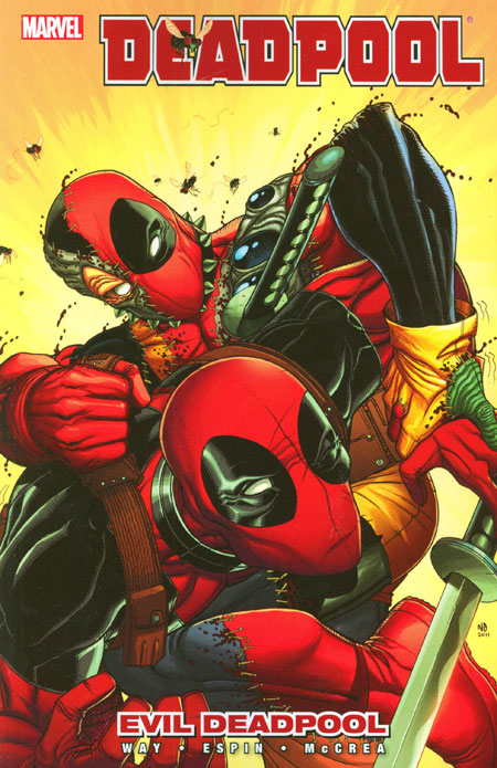 Would the real Wade Wilson please stand up? Deadpool returns to America, but he's not coming home alone! When a collection of Deadpool's discarded body parts meld to form an evil clone, the Merc With a Mouth faces off against himself for the crown of most hated former mercenary turned super hero turned pirate turned intergalactic bounty hunter. But their explosive confrontation brings the NYPD, Interpol and even Captain America bearing down on Deadpool, and he'll have to convince them all there's an even crazier, less principled version of himself on the loose! Plus: Deadpool: The Musical! Collecting DEADPOOL (2008) #45-49 and #49.1.