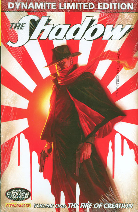 Who knows what evil lurks in the hearts of men? The Shadow knows! In the storyline 'The Fire Of Creation', it's 1938 and The Shadow returns in a tale of blazing action and deadly intrigue, as a night of carnage on the New York waterfront plunges the mysterious vigilante into a conspiracy involving the fate of the world itself. As storm clouds gather across the globe, American Military Intelligence meets with a certain Lamont Cranston, determined to beat a host of spies and assassins to the greatest prize of all... but what that might be, only the Shadow knows. Collecting the first six issues of the hit series written by Garth Ennis and drawn by Aaron Campbell, featuring Garth Ennis' script to issue #1 as well as a complete cover gallery featuring art by Alex Ross, Jae Lee, John Cassaday, Ryan Sook, Howard Chaykin, and more. Now you can own this beautiful hardcover with a signed tip-in sheet by writer Garth Ennis AND remarked by interior artist, Aaron Campbell!