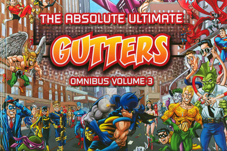 The Absolute Ultimate Gutters Omnibus Volume 3 is the newest collection of the wildly popular Gutters comic. Written by Ryan Sohmer (Least I Could Do, Looking For Group), Gutters is a series of standalone pages that parody the comic book industry and the heroes and characters that dwell within. Each page is penciled, inked and colored by a different artist, varying from industry veterans to newcomers. Volume 3 is an over-sized full color (and glossy) printed book. With a cover by Tom Richmond (of MAD magazine fame) and a forward by C.B. Cebulski (Marvel comics wunderkind), this is a book that your customer will love.