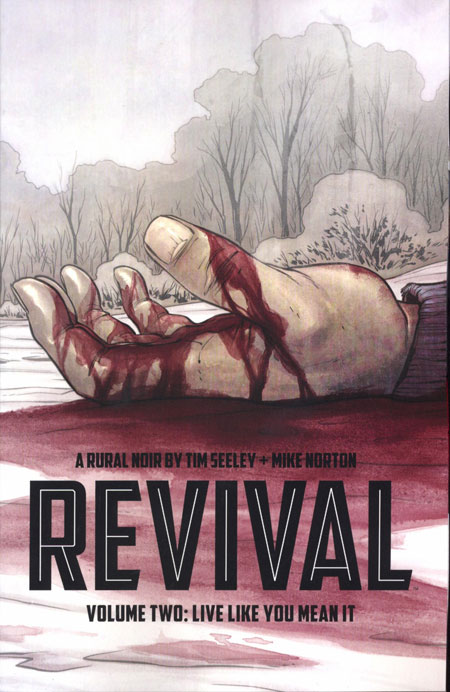 story TIM SEELEY art MIKE NORTON & MARK ENGLERT cover MIKE NORTON & JENNY FRISON For one day in rural central Wisconsin, the dead came back to life. Now the living and the recently returned struggle to maintain a sense of normalcy, amidst political and religious conflicts. Collects REVIVAL #6-11.