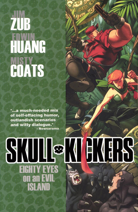 story JIM ZUB art EDWIN HUANG & MISTY COATS cover EDWIN HUANG & ESPEN GRUNDETJERN The fourth SKULLKICKERS adventure is madcap island mayhem with tropical terror, savage stupidity, beach brawls and jungle jams alongside surprising revelations about the SKULLKICKERS mythos. Collects SKULLKICKERS #18-23 (including the five 'unbooted' issues Uncanny, Savage, Mighty, All-New Secret, and Dark Skullkickers Dark).