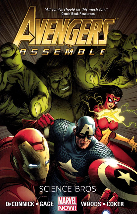 Two scientists, two giant egos. One wears a tank - one is a tank. Tony Stark and Bruce Banner are science bros! And when a fellow big-brain goes missing, the two heroes take bets who can find him first! It's Amazing Race, Avengers-style, as Iron Man and Hulk embark on a global manhunt with the ultimate prize at stake: bragging rights! But what happens when a 20-million-year-old evolutionary catalyst infects the Hulk? The Avengers must find the missing scientist before he and his Order of the Dragon unleash his bacteria on the entire world! Then: The Black Widow's sins have resurfaced! Widow, Spider-Woman and Hawkeye travel to Siberia to search for a missing girl with ties to an old Soviet assassination. But the truth behind the girl's disappearance may be more than the Avengers are prepared to handle! Plus: a major turning point in the life of the android Avenger known as the Vision! Collecting AVENGERS ASSEMBLE #9-13 and ANNUAL #1.