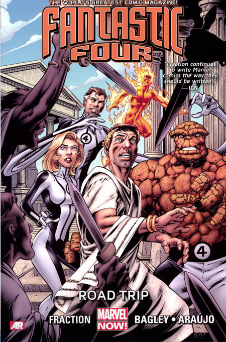 The Fantastic Four's road trip through time and space continues! On an alien world, the team encounters a thousand-year-old prophecy: Is the Invisible Woman a long-awaited intergalactic messiah? Then, the F4 sightsee in ancient Rome and dine with Caesar on the Ides of March. Did somebody say, 'Pass the knife'? And it's a visit to both the beginning and the end of time, as Marvel's First Family witnesses the Big Bang and the Big Crunch! But to their surprise, they're not alone! What happens beyond the end of infinite time and space? Plus: One day a year, the Thing reverts to his human form. This year, Ben Grimm is going to go home again - as Ben Grimm! And when there's sibling rivalry between Franklin and Val, all bets are off! Collecting FANTASTIC FOUR (2012) #4-8.