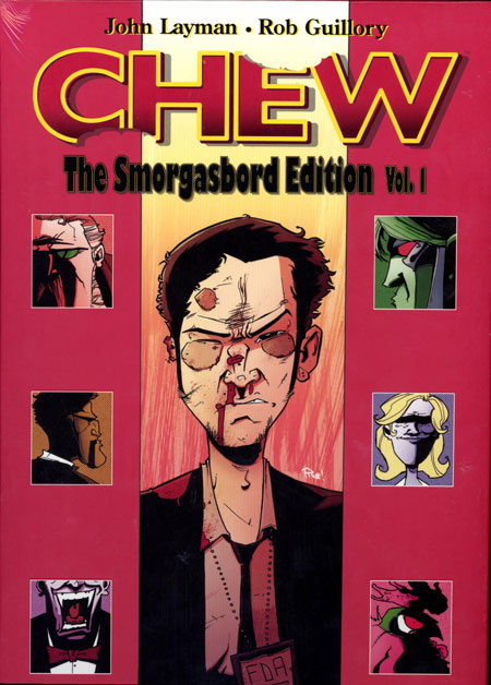 The CHEW SMORGASBORD EDITION is the ultimate CHEW experience! Stuff yourself on this massive, deluxe hardcover featuring the first 20 issues of the New York Times best-selling, Harvey- and multiple-Eisner Award-winning series about cops, crooks, cooks, cannibals, and clairvoyants. One oversized slip-cased volume, jam-packed with extras. It'll be a feast for your senses and a diet for your wallet!