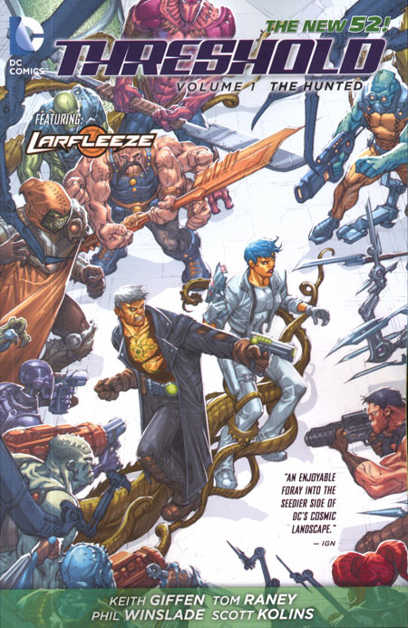 Jediah Caul, a disgraced Green Lantern stripped of his power ring, is hunted for sport on a televised reality show! Forced to battle aliens from across the galaxy, Caul must assemble his own group of rebels to storm the metaphorical castle of their abductors before the game ends and they lose. Collecting THRESHOLD #1-8 and GREEN LANTERN: NEW GUARDIANS ANNUAL #1!